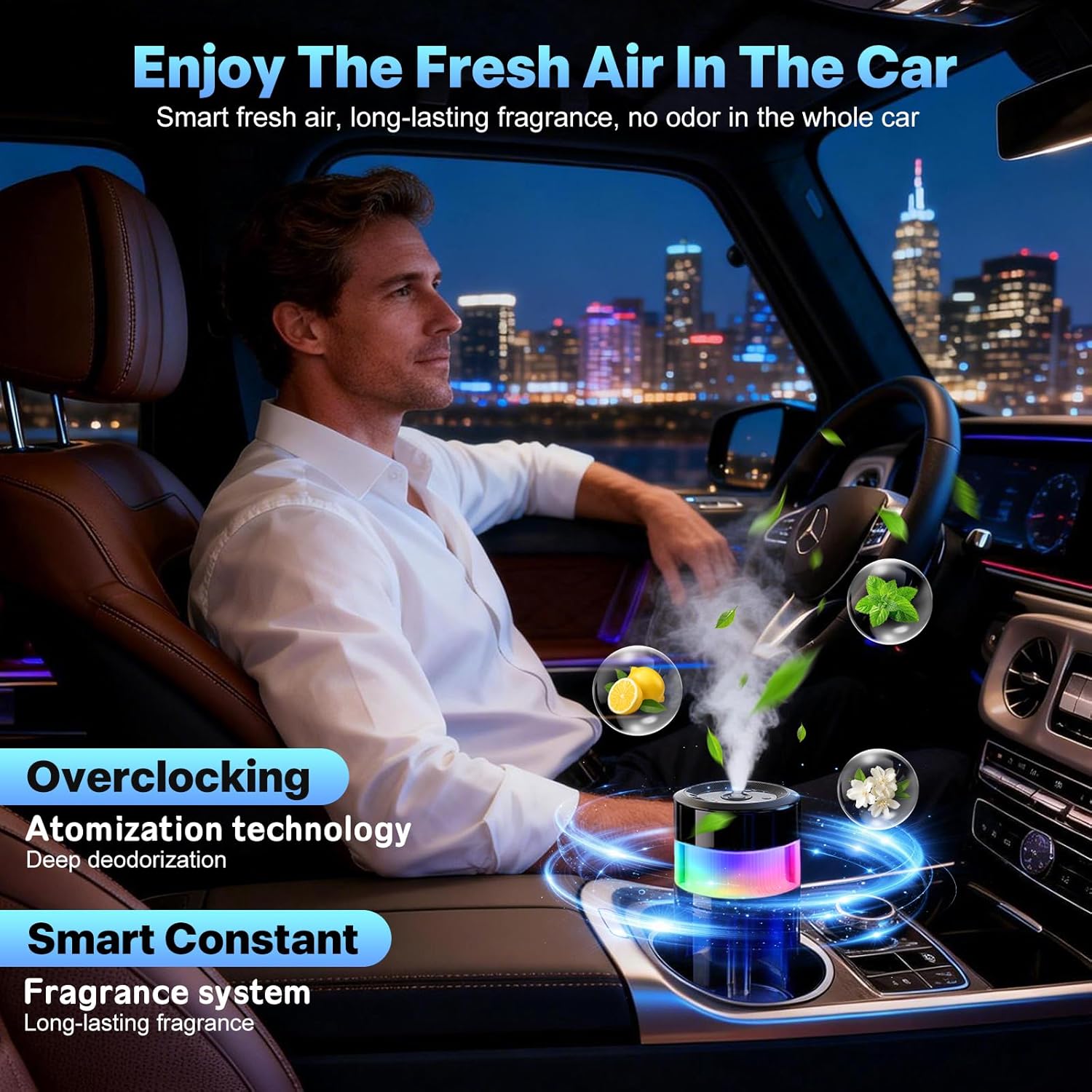 - Four-Level Fragrance and Lighting Adjustment: Smart car air freshener system offers complete control over your in-car environment. Adjustable mist volume and LED light brightness perfectly and quickly remove odors or create a long-lasting, elegant fragrance. Smart car air freshener system delivers a perfect aromatherapy experience.