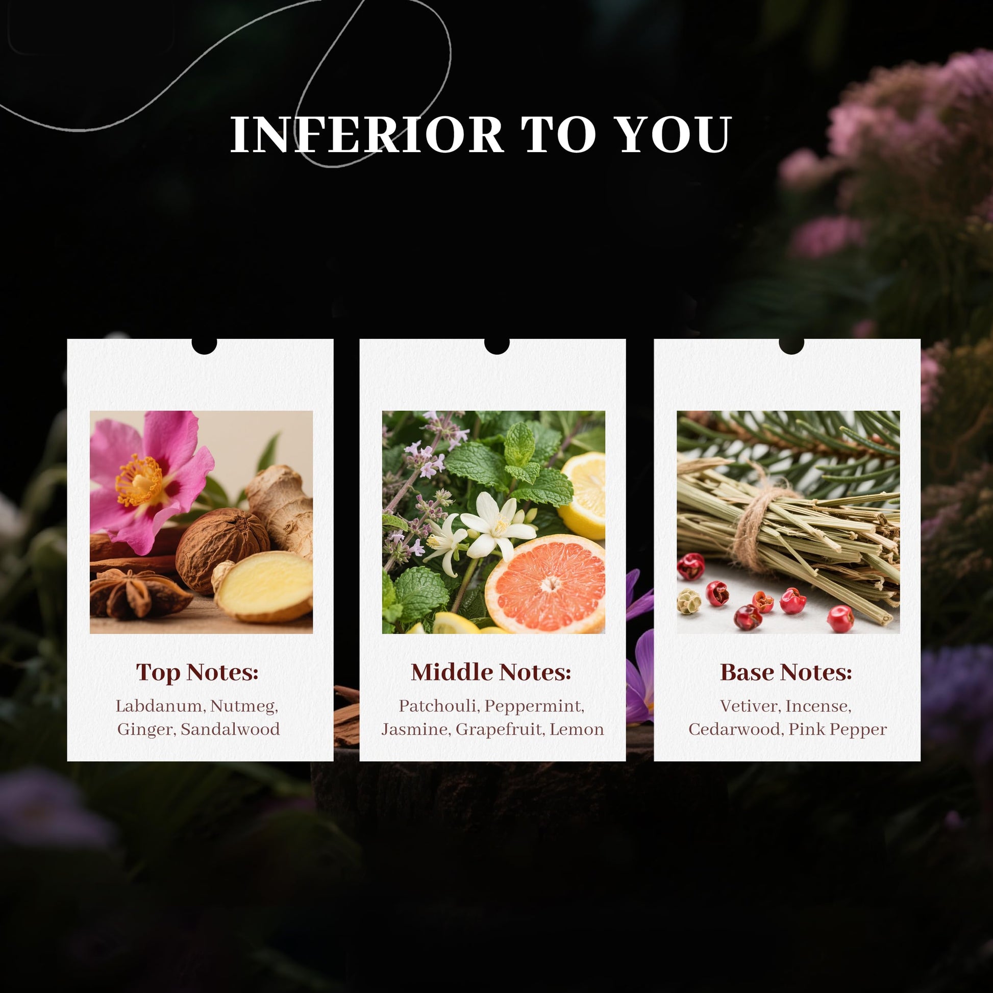 - 【CAPTIVATING FRAGRANCE】We've named our aromatic essential oil INFERIOR TO YOU. The vibrant aroma of rock rose, cardamom, and jasmine exudes mature charm, mingling with mint, lemon, and grapefruit's freshness, then settling serenely with cedar and vetiver—like instant infatuation, love at first sniff. Nothing compares to you.